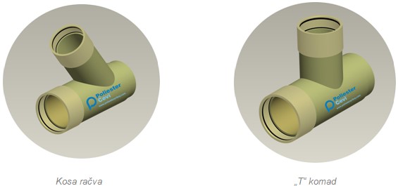 Poliester fazonski komadi se izrađuju od cevnih segmenata. Isporučuju se za klase pritiska kao i cevi.